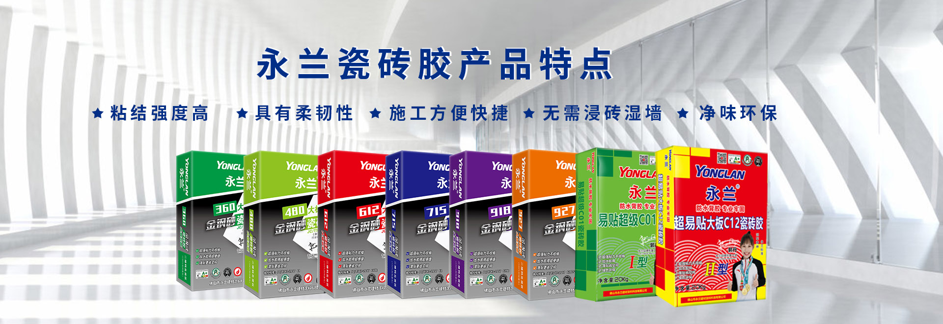 佛山市永蘭建材涂料科技有限公司,坐落在美麗的陶瓷之都佛山,專注水性瓷磚膠粘劑和防水材料領域十余年,是一家集研發、生產、銷售服務為一體的國家高新技術企業,擁有國際水平的膠粘劑實驗研發中心和自有產權的總部大樓,產品覆蓋瓷磚背膠、巖板大板瓷磚膠, 廚衛防水,戶外防水,拉毛界面、美縫彩砂 瓷磚修復翻新材料等,產品均